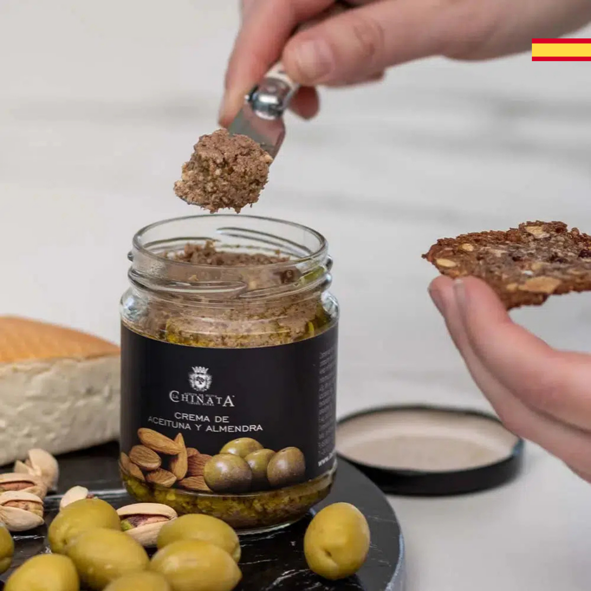 La Pasta de Aceitunas Verdes y Almendras La Chinata fusiona lo mejor del Mediterráneo en un producto inigualable. Las aceitunas verdes se combinan a la perfección con las almendras tostadas, creando un equilibrio de texturas y sabores que sorprenderá a los paladares más exigentes.